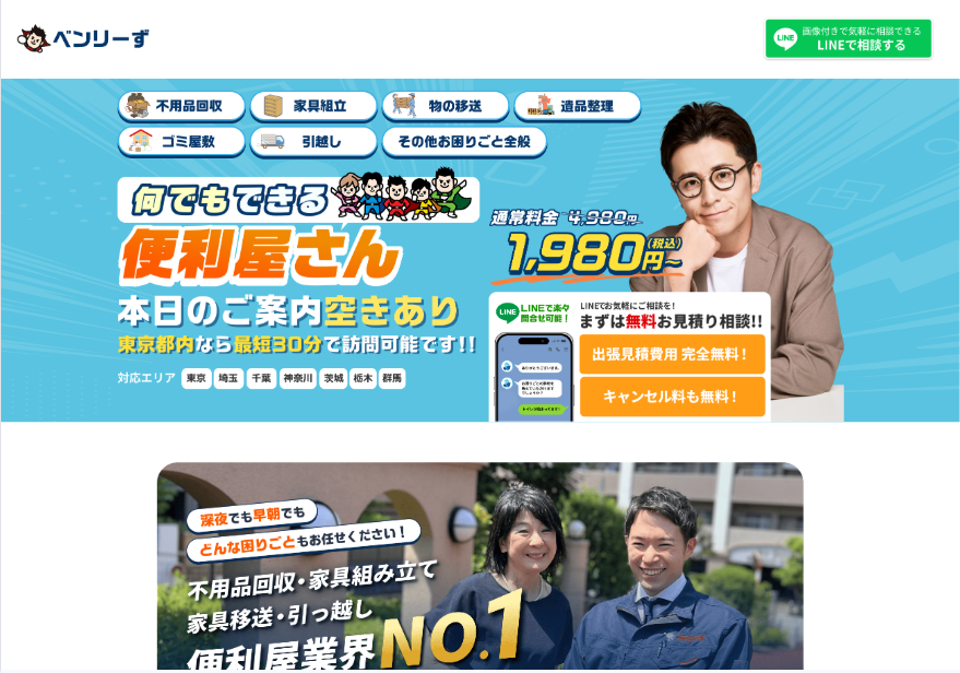また、急ぎの依頼にもできる限り対応してくれるのがベンリーずの大きな魅力です。深夜・早朝でも相談できる体制が整っているため、「今すぐ助けてほしい」という状況でも、ベンリーずなら安心して依頼できます。